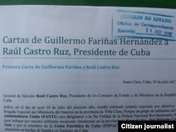 Activistas del Foro Antitotalitario Unido (FANTU) entregaron en el Consejo de Estado de la República de Cuba, en la embajada cubana en Washington y en la Fiscalía Militar de Villa Clara, dos cartas dirigidas al gobernante Raúl Castro con las peticiones que el disidente Guillermo Fariñas hizo al Gobierno al inicio de la huelga de hambre, el pasado 20 de julio.